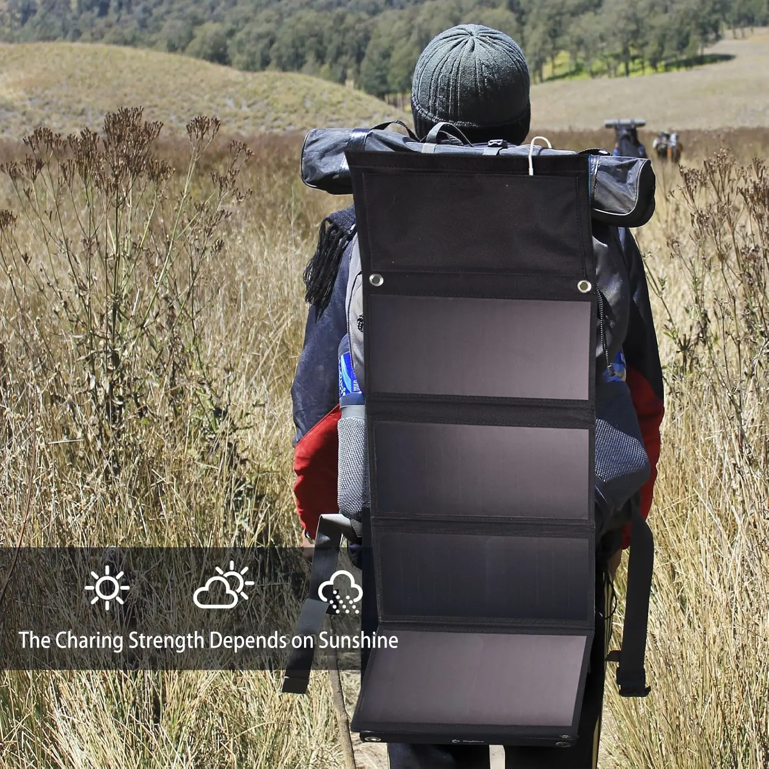 28W Portable Solar Panel 5VFolding Solar Panel 2 USB Ports Phone Charger with SunPower Solar Cell for mobilephone Camping Hiking