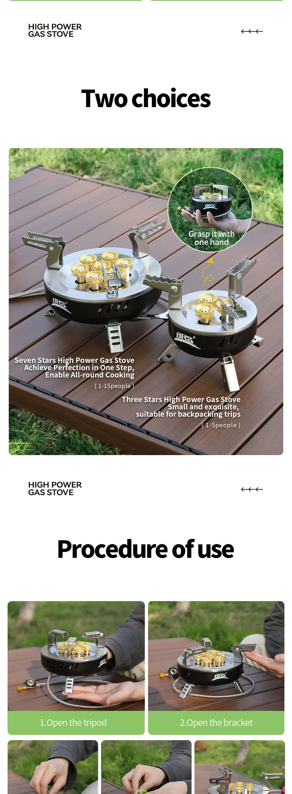 Material: Stainless steelMade of durable stainless steel, this gas stove is built to last and withstand the wear and tear of outdoor activities.