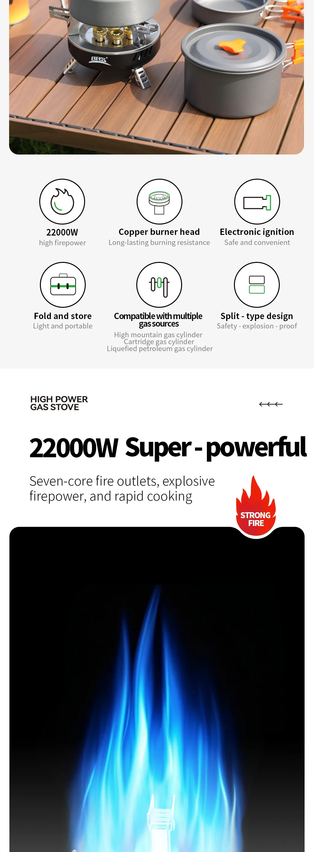 High Power Output: With an output of 9600W/22000W, this gas stove is perfect for camping and outdoor activities, providing ample heat and power to cook and warm up.