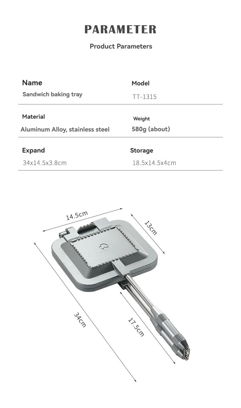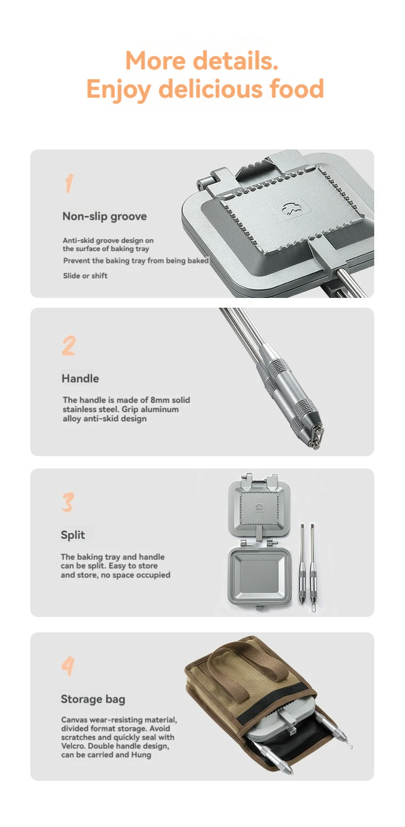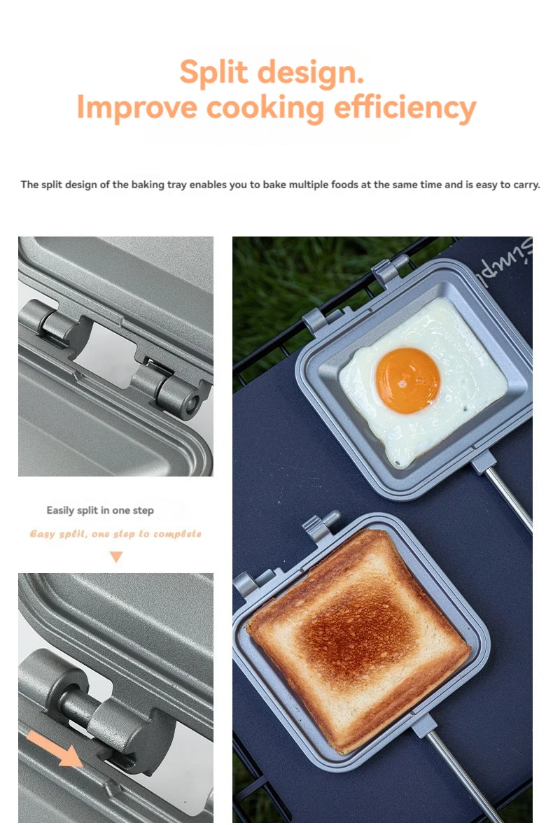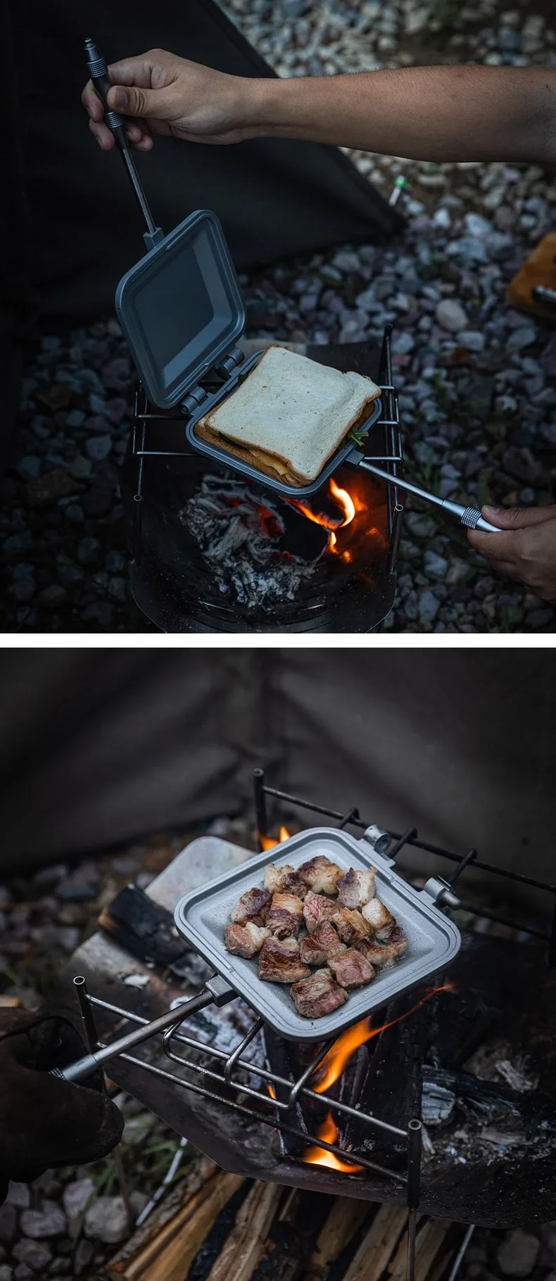 CAMPINGMOON Sandwich Baking Tray, Double-sided, Non Stick to Toast, Bread, Multi-purpose Camping Breakfast Baking Tray