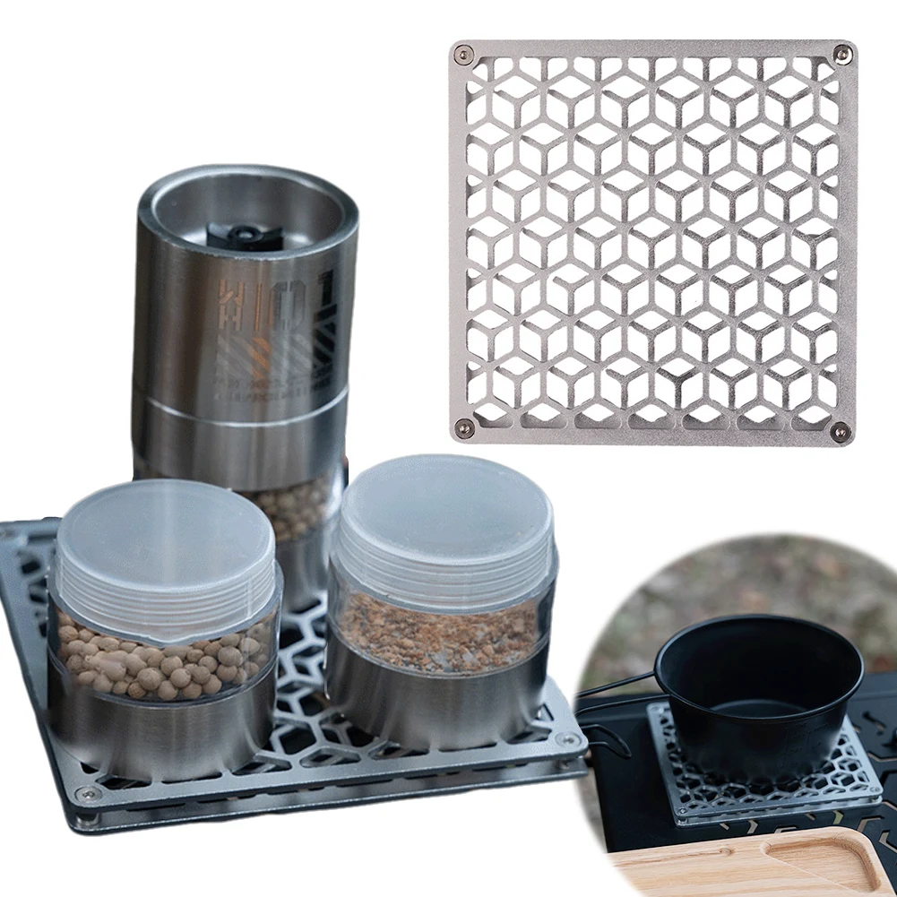 WELLHIKE Double Layer Camping Insulation Mat Aluminum Alloy Outdoor Square Coaster Metal Tableware Mat Supplies for Hot Dish Pot