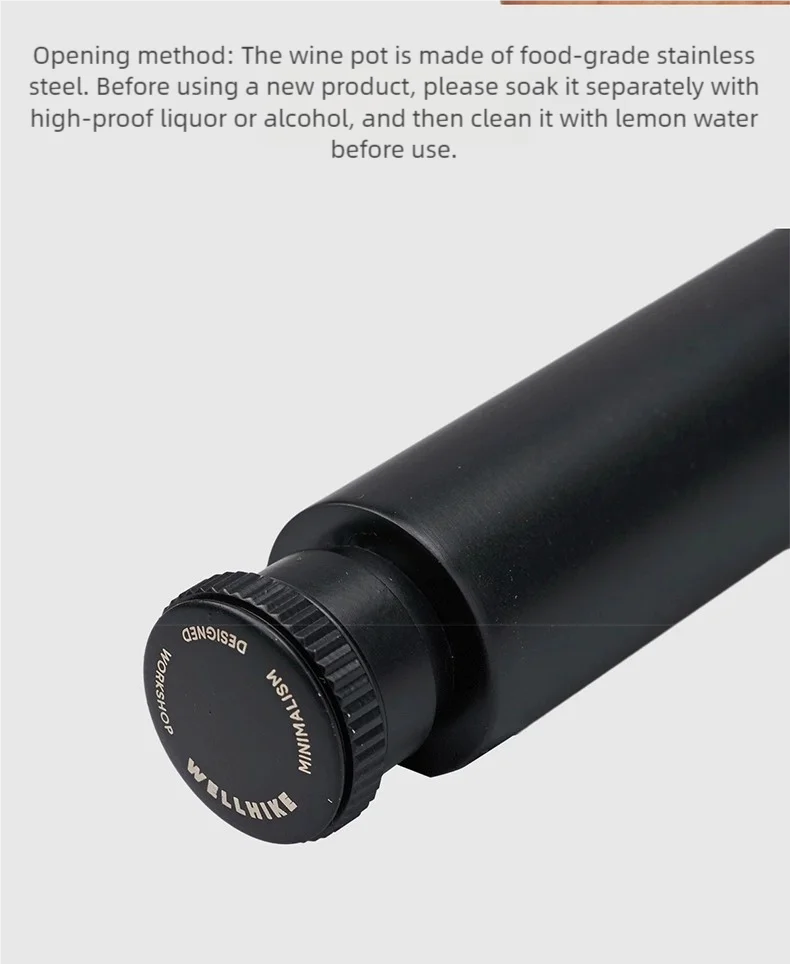 4.The Wellhike Portable Small Wine Jug 45ml's sleek and stylish design, combined with its high-quality 304 stainless steel material, offers a modern and elegant solution for wine enthusiasts and travelers alike.